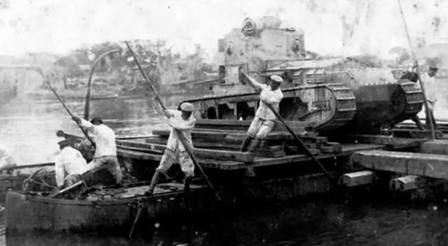 图 1. 1925 年日本陆军组建了第一战车队和步兵学校战车教导队,装备坦克为进口的法制雷诺 NC 型坦克和英制 MKA 型坦克。照片中带头的两辆坦克为英制 MKA 型坦克,第 3 辆似乎是一辆法国制"雷诺" FT-17