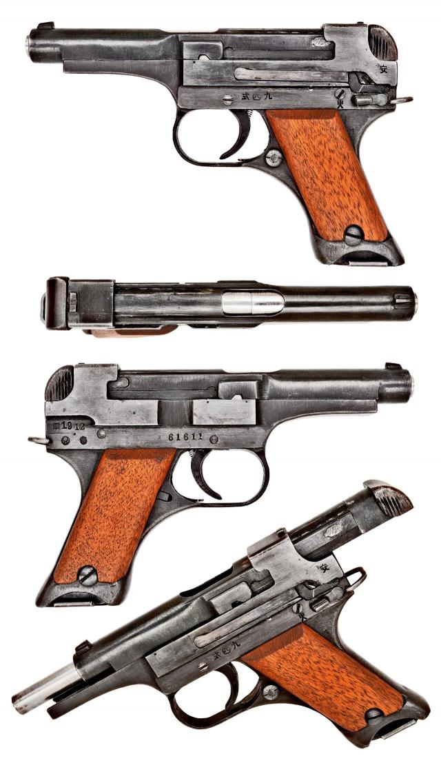 图 21. 南部九四式 8 毫米手枪,设计者为南部麒次郎,1934 年定型,发射 8*22 毫米南部手枪弹,弹匣容量仅 6 发,有效射程 50 米。因尺寸相对较小,主要是配发给指挥官、飞行员以及航空人员使用的防身手枪,在后期的太平洋战场上也有少量配发给战车的车长