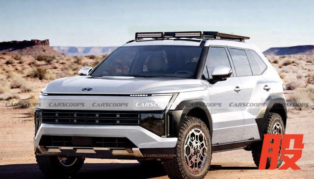 全新途胜的设计灵感源自现代去年末发布的 CRATER 概念车,本次曝光的渲染图为 XRT 版本,新车采用了现代不断演进的“钢铁之艺”设计理念。整车以硬朗线条、像素化灯光和方正车身姿态为核心设计语言,与现款车型的圆润轮廓形成鲜明区隔。